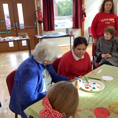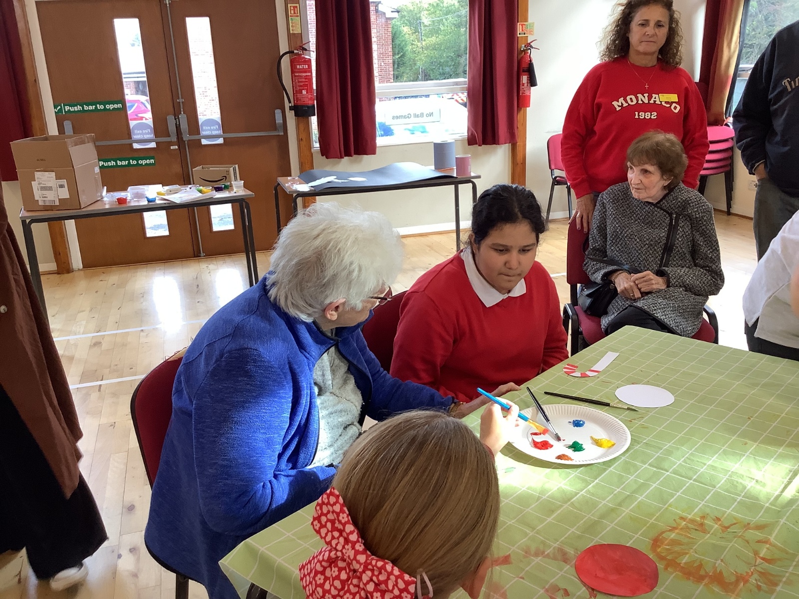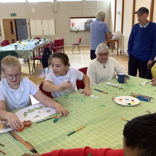Diamond class has been attending the village hall every Friday to have a drink and cake with the locals. The children sang on remembrance day – 'We'll meet again.' and 'Pack up your troubles'. A great time was had by all. We attended the 'All sorts group and created community art projects.