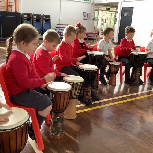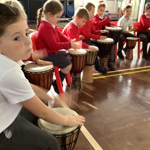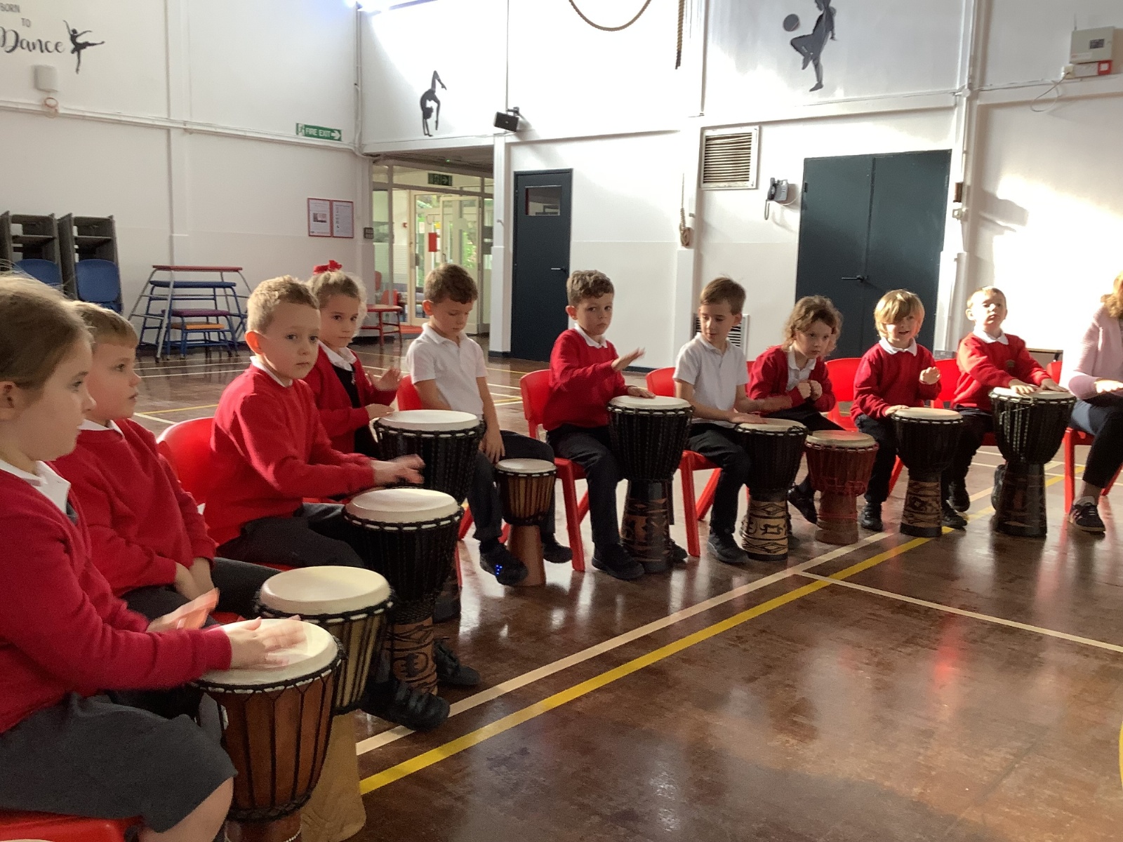 We celebrated diversity in October, including Mrs Brennan teaching the whole school how to play the African Drums we have in school.